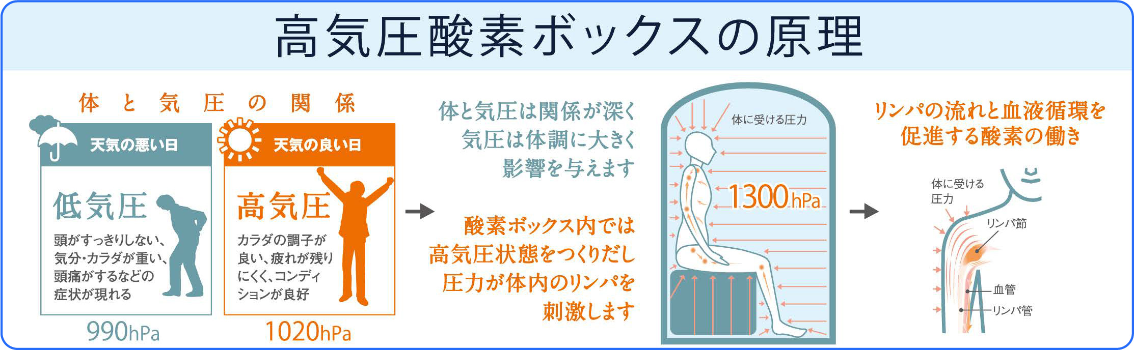 酸素カプセル内で高濃度酸素を摂取することで、 血流が促進され心身機能をサポートするなどのメリットが得られます。