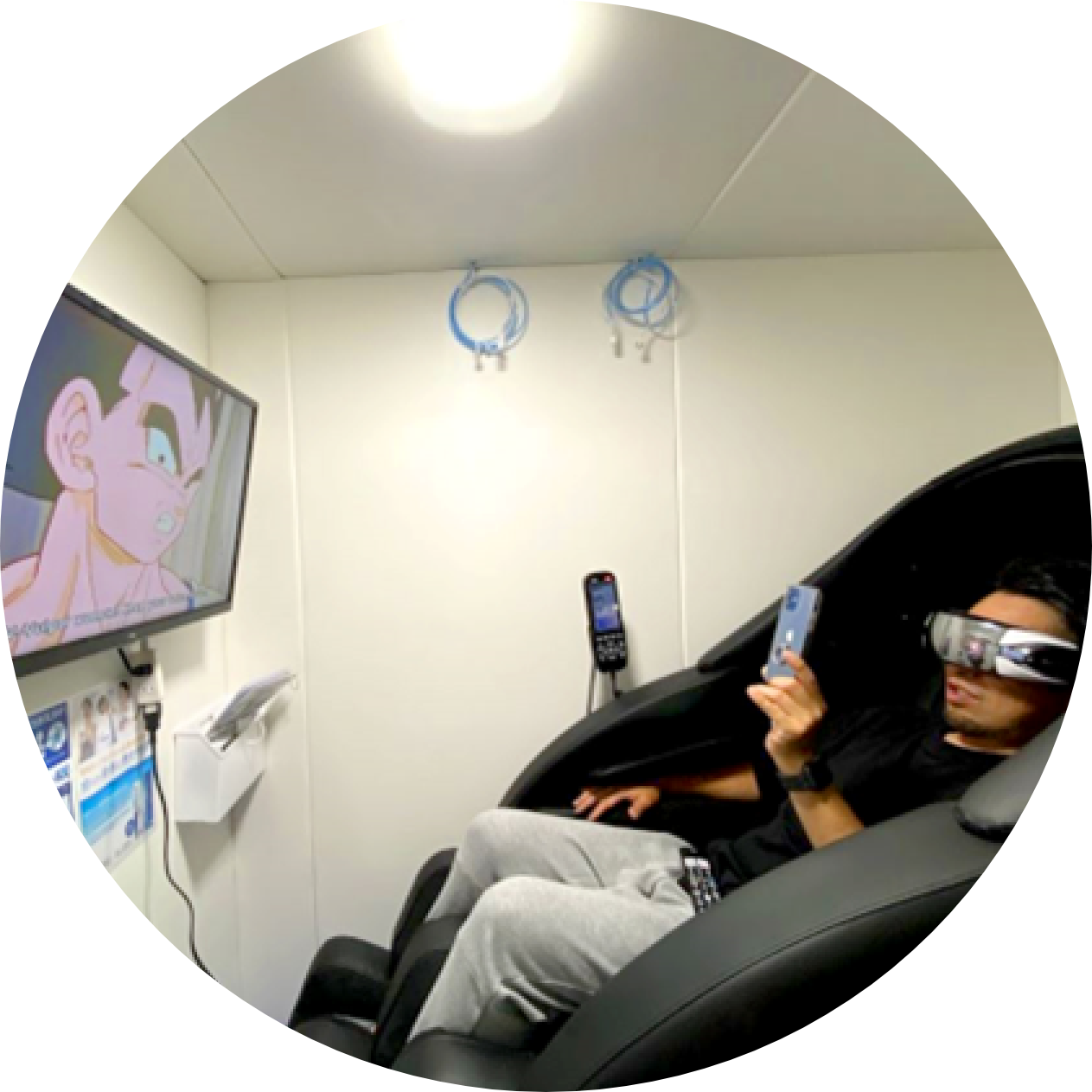 酸素ボックス内は広々としておりテレビの設置もOK。映画鑑賞や読書など、自分好みの方法でリラックスできます。
